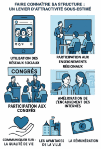 Enfin, la qualité de vie ne doit pas être négligée : souplesse d’organisation, postes mixtes CHU–périphérie, accompagnement du conjoint, et valorisation du cadre de vie territorial sont des arguments concrets, souvent décisifs, pour un jeune praticien en quête d’équilibre.